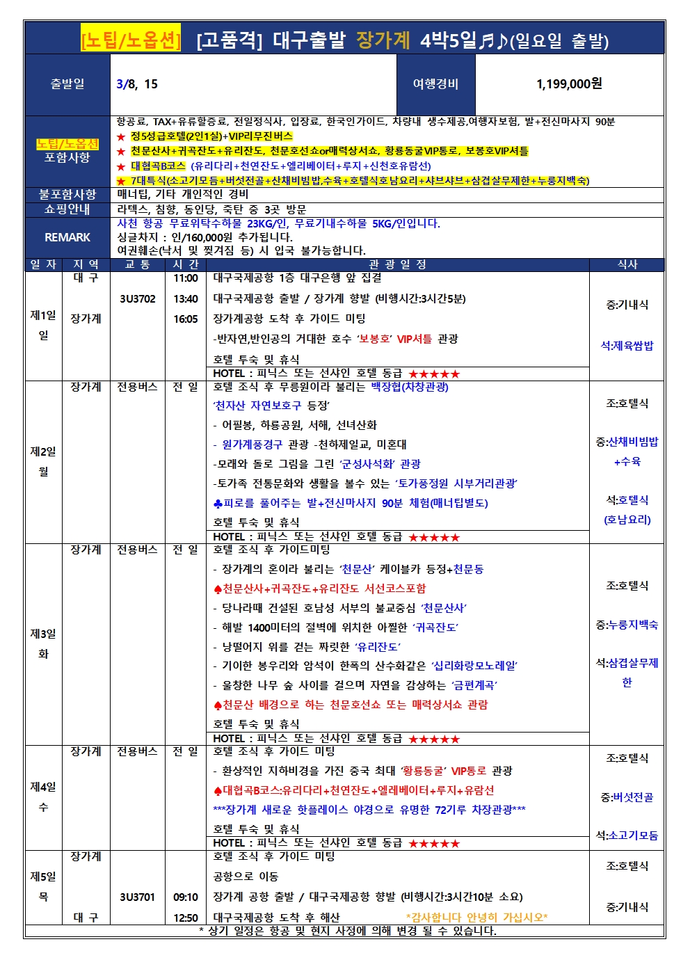 #광주출발+대구출발장가계