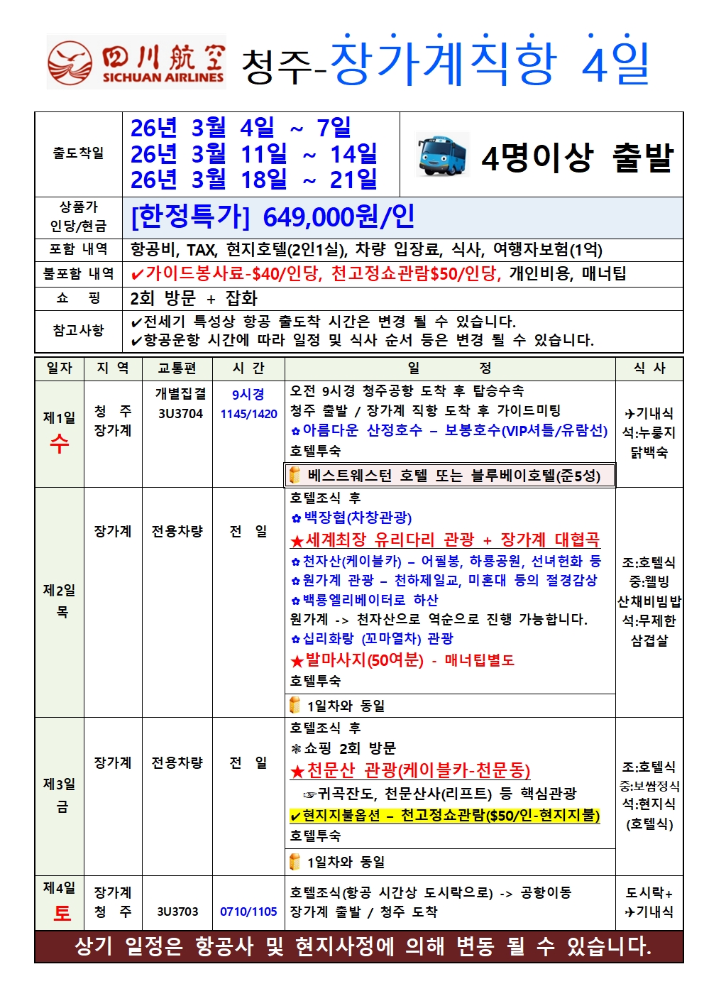 #광주출발+청주출발장가계