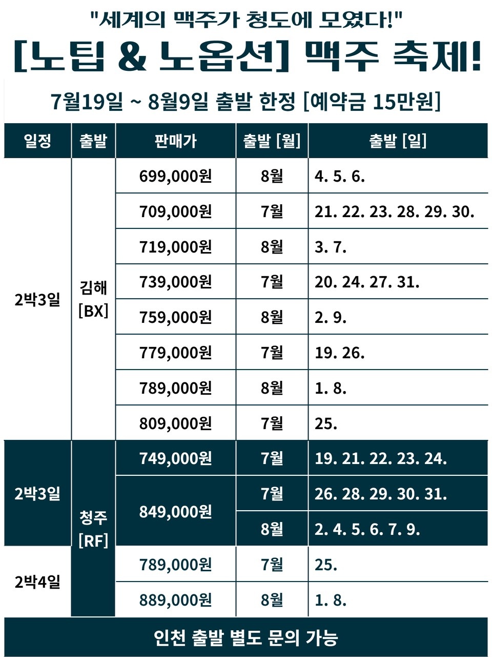 인천/김해/대구출발->청도, 칭다오 국제 맥주 축제 테마 여행 [노팁 & 노옵션]