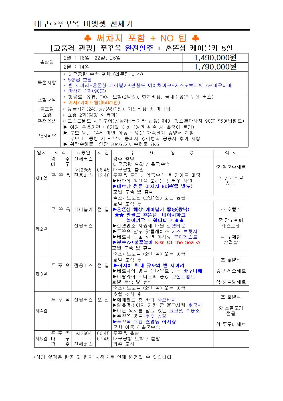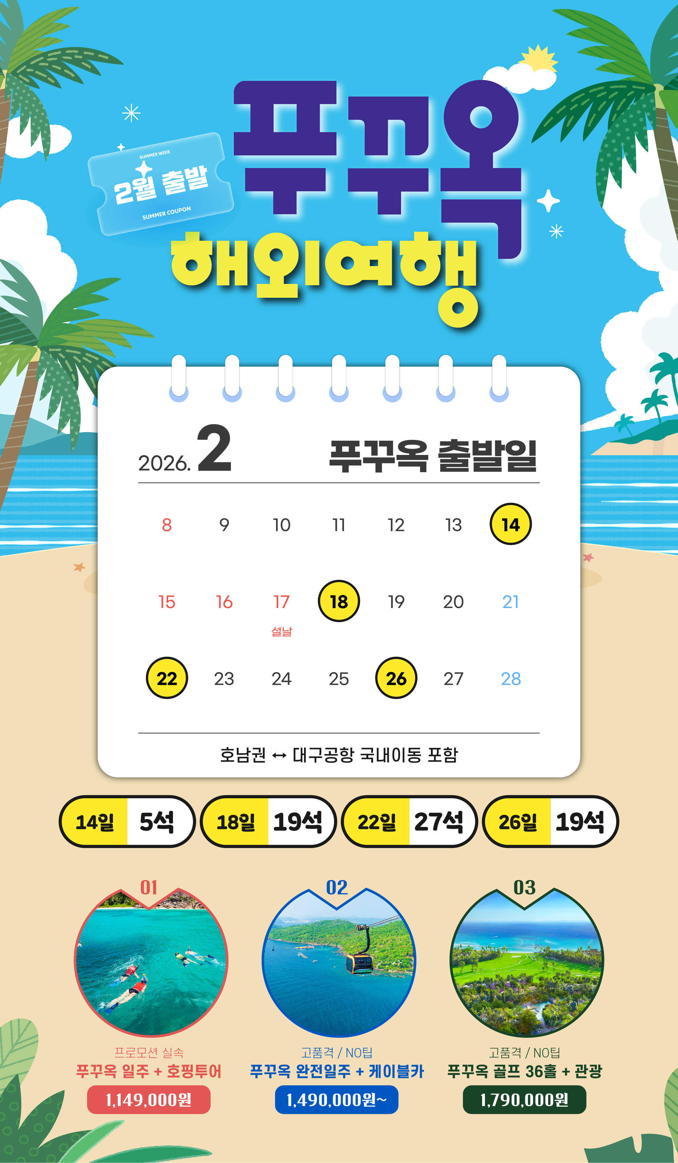 2. 2월 14[설연휴], 18, 22, 26일 출발