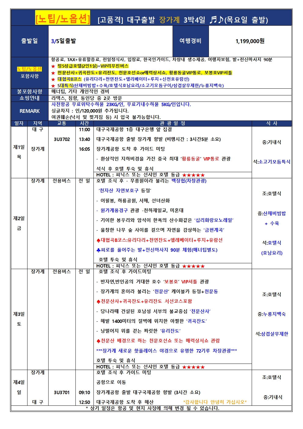 #광주출발+대구출발장가계