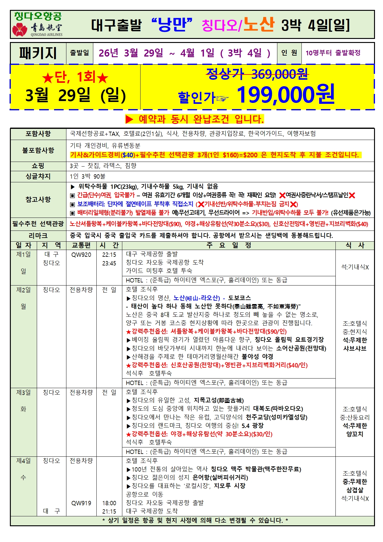 3박 4일‘199,000원