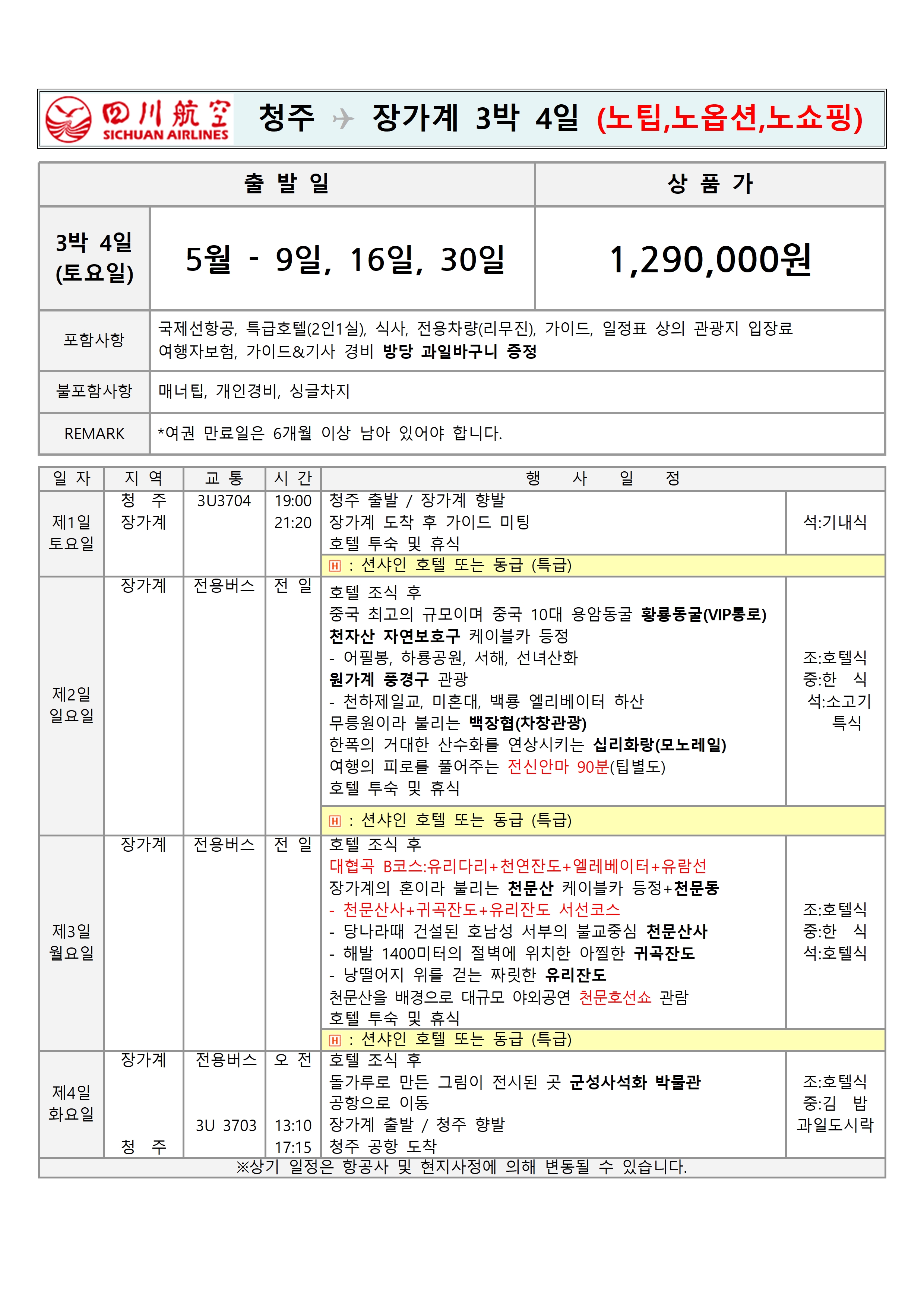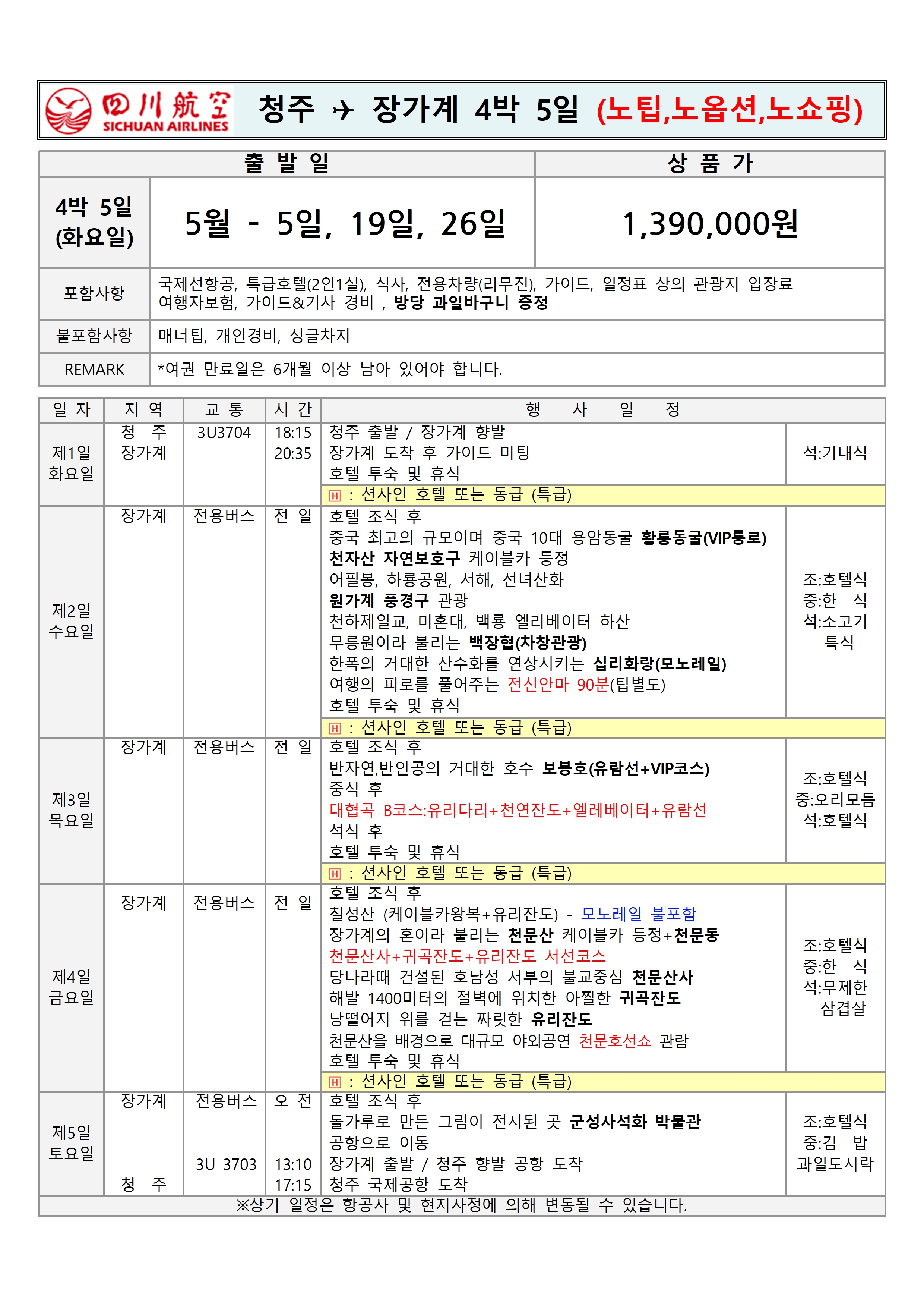 ★5月 가정의달 맞이 돌아온 청주 장가계 노팁 노옵션 노쇼핑 상품!!★