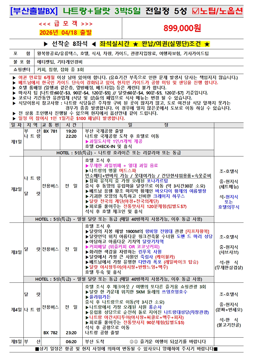 << 4/18 출발 >> 나트랑+달랏 3박5일