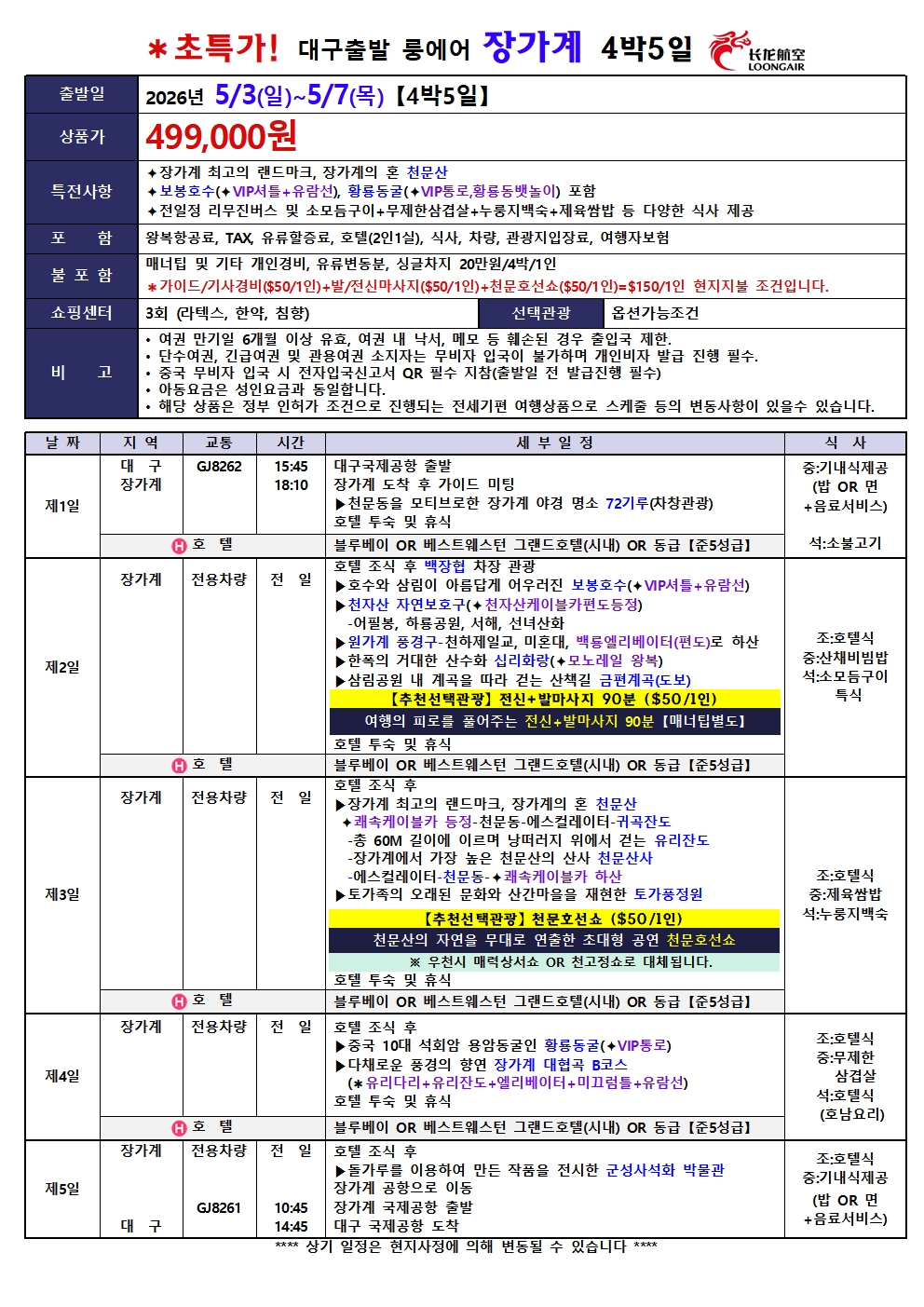 #광주출발+대구출발장가계