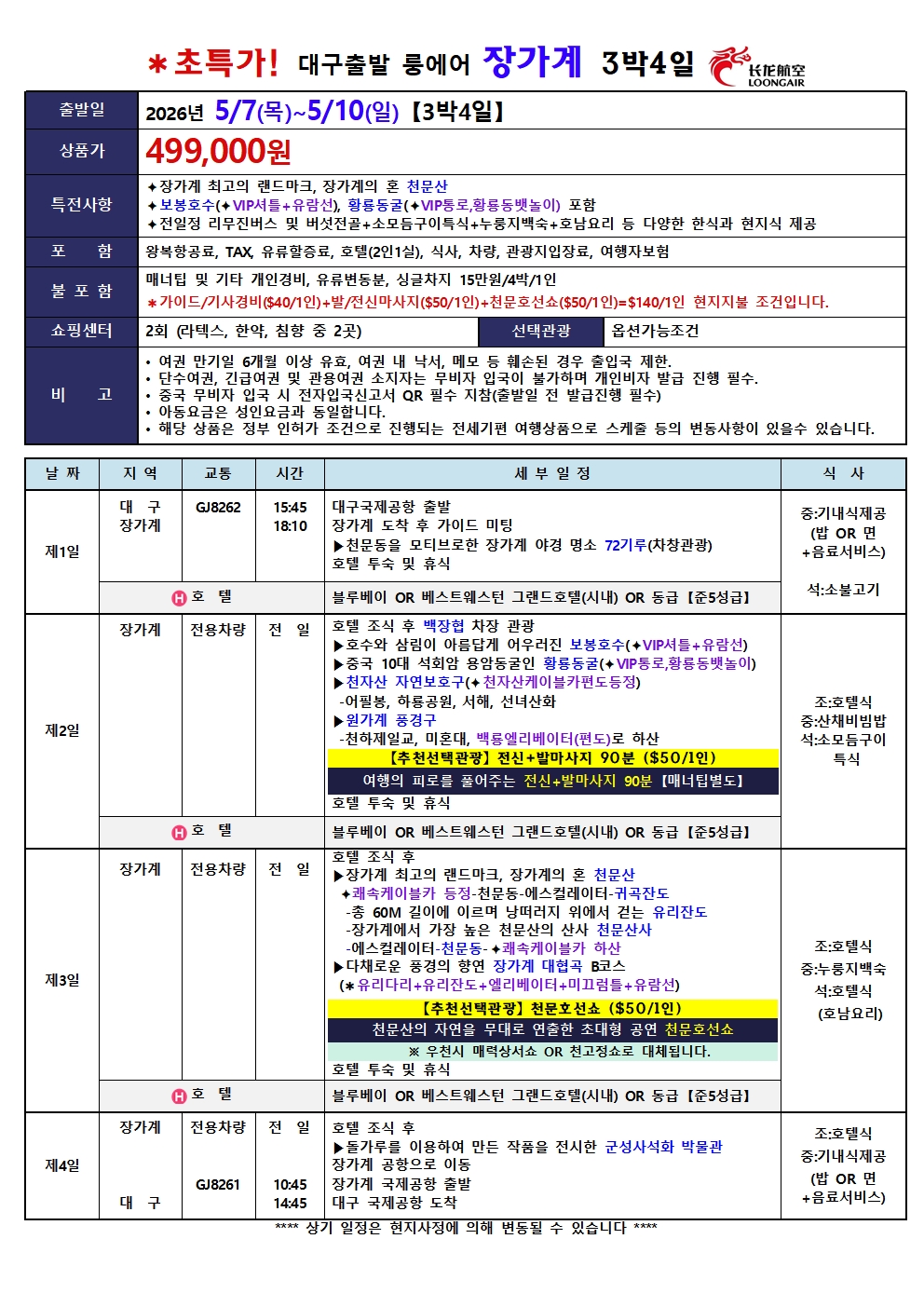 #광주출발+대구출발장가계