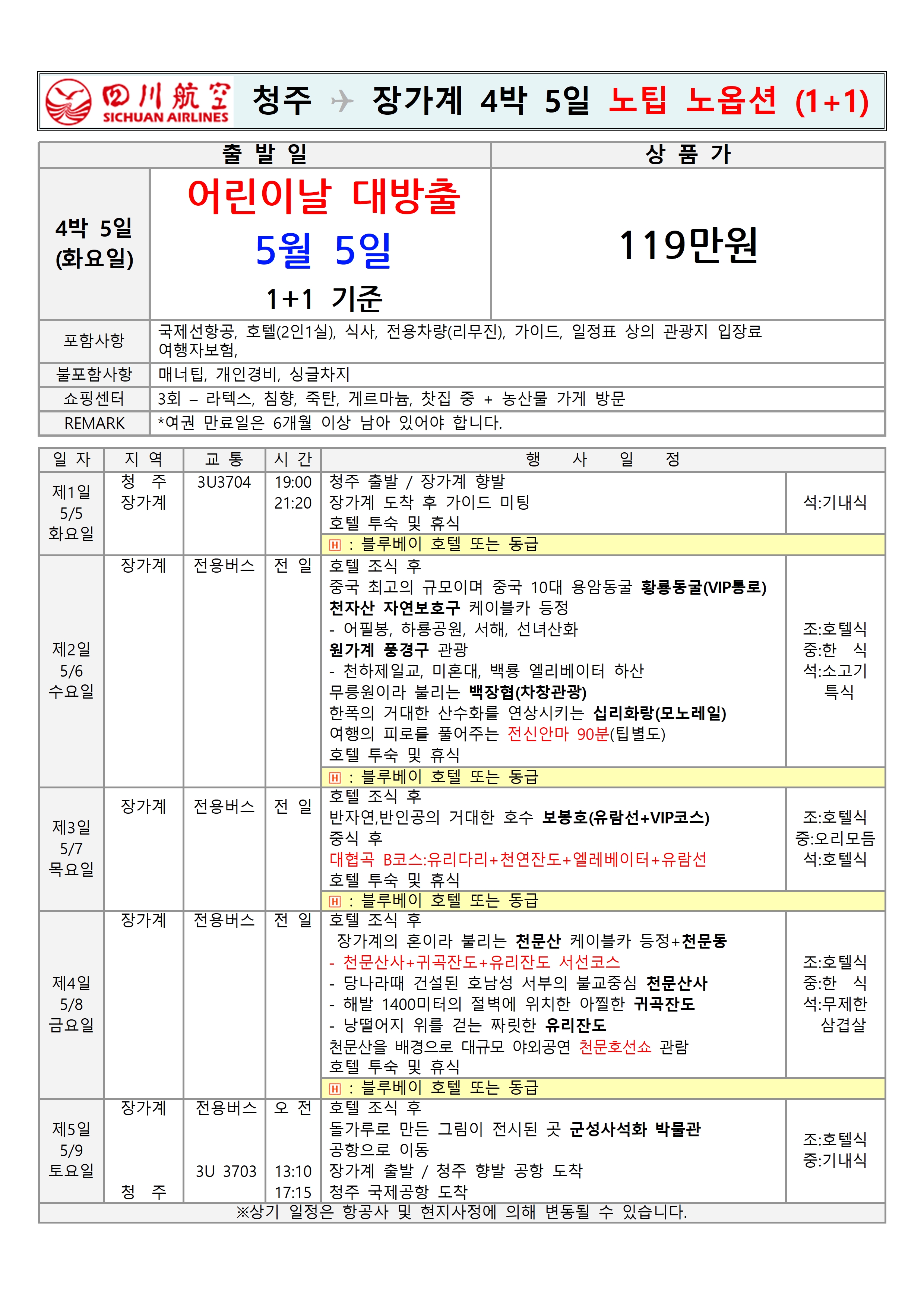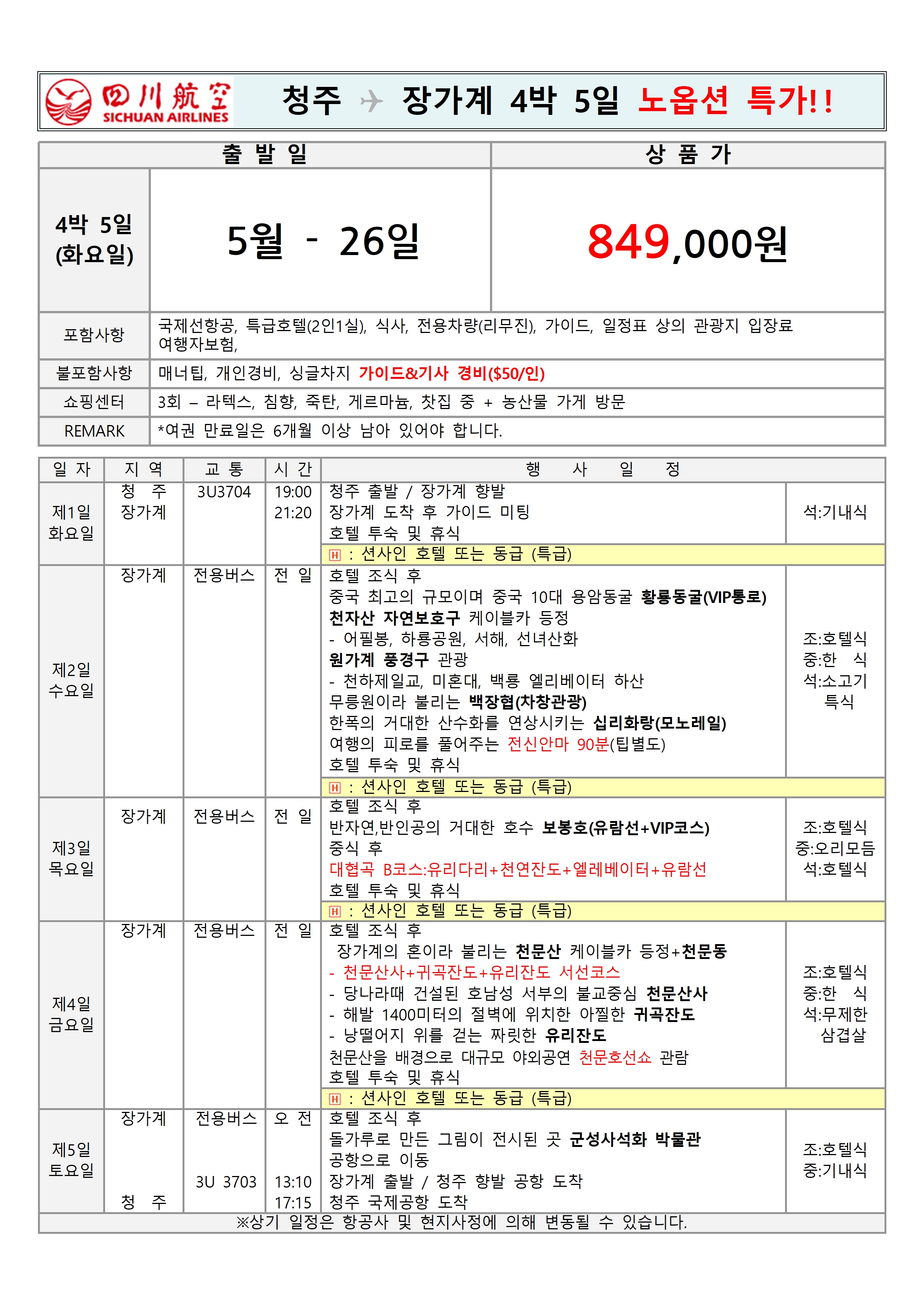 단언컨대 !! 청주 장가계 특가 더 이상 가성비 좋은 상품은 없습니다!!