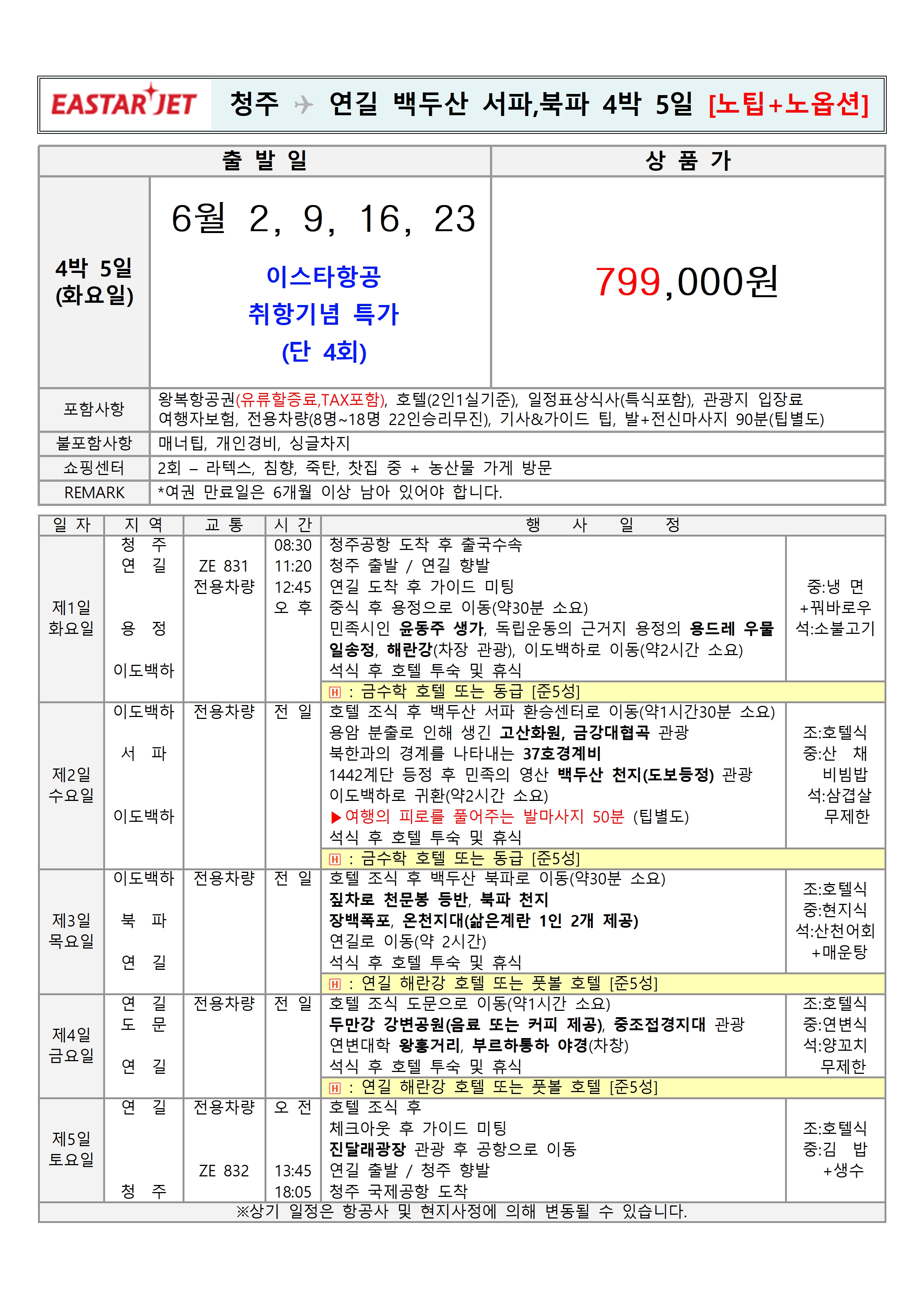 5월(토요일출발 3박 4일) - 9일, 16일, 30일
