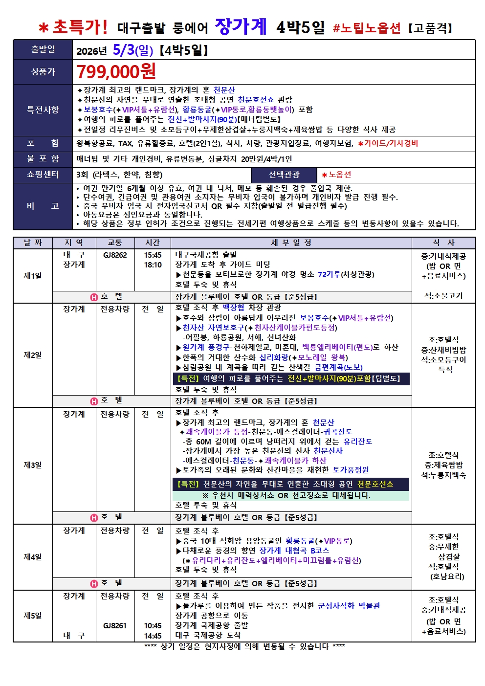 #대구출발장가계