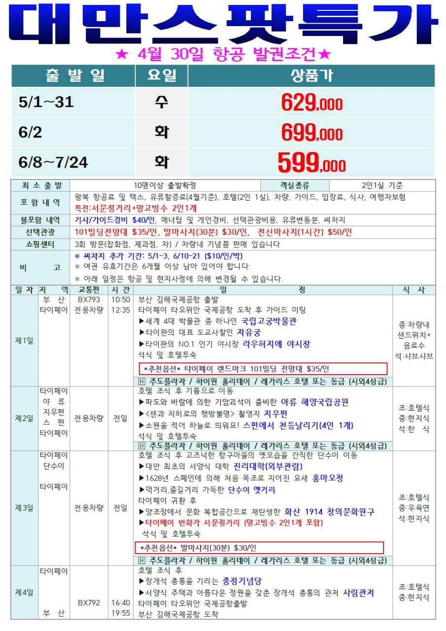 🚨대만 타이베이 5~7월 스팟특가🚨